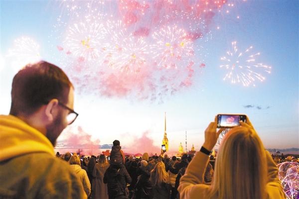 圣彼得堡燃放烟花纪念卫国战争胜利76周年