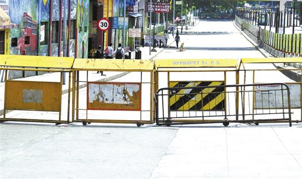 5月10日,印度卡纳塔克邦首府班加罗尔一条道路被路障封锁。 由于疫情不断恶化, 印度多地收紧疫情防控措施。印度卡纳塔克邦首府班加罗尔现存新冠确诊病例超过30万例,全国最多。当地新冠病毒检测阳性结果比例超过30%。新华社发