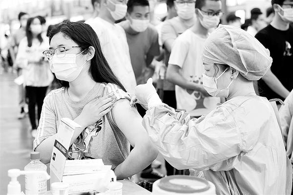5月13日,在安徽农业大学新冠疫苗接种点,医护人员为师生接种新冠疫苗。当日,安徽省合肥市蜀山区疾控中心联合琥珀街道在安徽农业大学内设置新冠疫苗巡回接种点,计划用4天时间为18000余名学生、教职工进行接种。新华社记者 黄博涵 摄