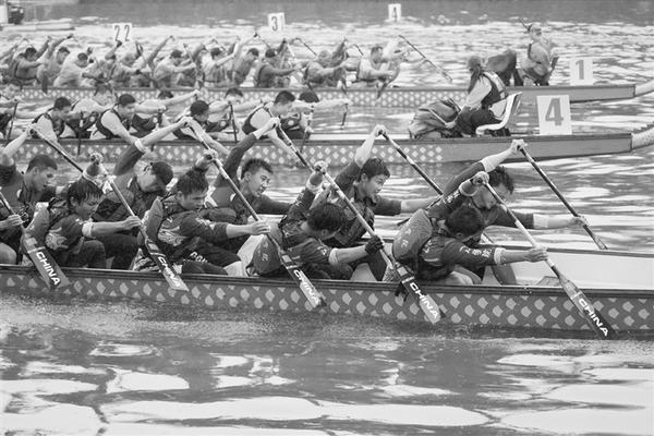5月16日,参赛选手将龙舟划向起点,准备比赛。