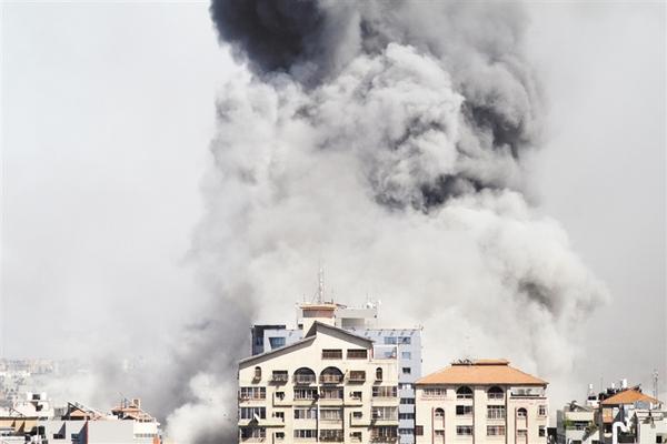 ③ 5月15日,加沙地带一栋多家媒体所在大楼被以军空袭后冒出浓烟。