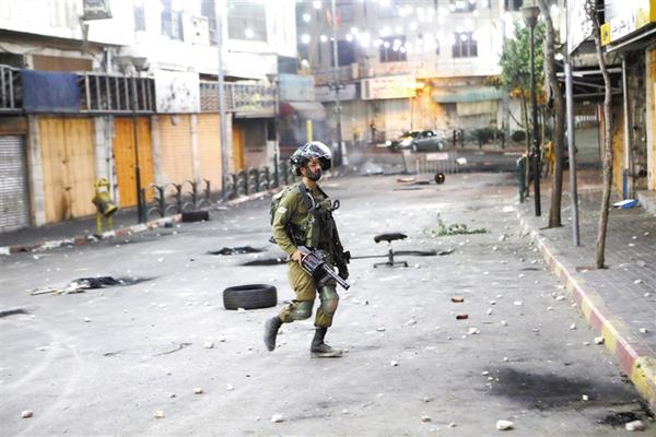 ② 5月15日,以色列士兵在约旦河西岸城市希伯伦同巴勒斯坦人冲突。