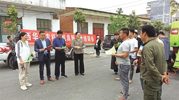 “三夏”来临,为保障“三夏”生产顺利进行,连日来,县农机中心以开展党史教育为契机,抓实服务举措,为群众解难题、办实事,积极备战“三夏”。图为该中心技术服务队在为农机手送政策、送技术、送服务。