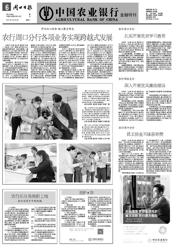 该行在贷款项目营销和信贷规模上主动向县支行倾斜,县域贷款较年初净增15.47亿元;聚焦农村特色经营主体,大力投放农户线上贷款产品“惠农e贷”,“惠农e贷”较年初净增3.06亿元,居全省第2位,有力助推乡村振兴;紧盯我市重大建设项目和央企在我市的工程,全力对接营销,投放沙颍河航道改造、高铁片区建设、中铁阳新高速等项目贷款8.72亿元,向周口师范学院发放中期流资贷款5000万元;稳步推进“纳税e贷”“抵押e贷”等纯线上法人贷款和简式贷等小微信贷,普惠型小微企业贷款较年初净增3.5亿元,支持500多户小微企业发展;聚焦居民消费需求,消费类贷款余额3.54亿元,信用卡分期较年初净增1.66亿元,更好地满足居民消费需求。