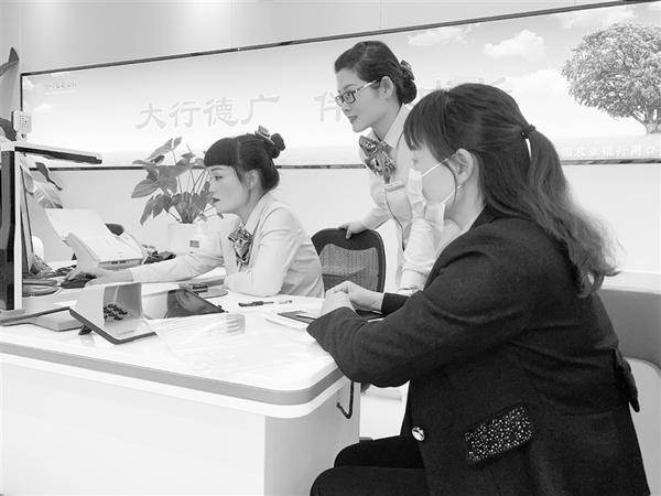 图二:农行周口分行认真贯彻落实党中央、国务院关于金融支持民营和小微企业发展的决策部署,强化责任担当,探索新模式,深化小微企业金融服务,切实解决小微企业融资难、融资贵问题,提高服务质效。图为农行周口分行营业部大堂工作人员正在为一企业负责人办理业务。
