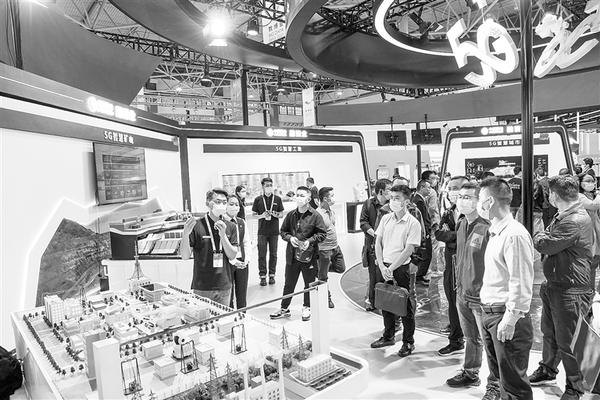 5月26日,参观者在“数博会”现场观看5G智慧展示。