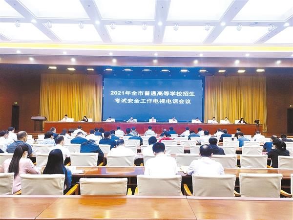 本报讯(记者 窦娜 文/图)5月24日上午,2021年全市普通高等学校招生考试安全工作电视电话会议召开,会议的主要任务是贯彻落实全国、全省高考安全工作会议及省考务工作精神,进一步统一思想,明确职责分工,强化工作举措,全面动员和部署安排2021年全市高考安全工作。副市长、市招委主任梁建松参加会议并讲话,市政府副秘书长、市招委副主任朱化礼主持会议。