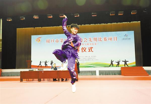 本报讯(记者 窦娜 通讯员 丁玺文/图)5月25日上午,周口市第四届运动会先期比赛项目开赛仪式暨社会组·县市区组太极拳比赛在市体育中心体育馆举行。副市长梁建松出席开赛仪式并宣布市四运会先期比赛项目开赛,市教体局党组书记、局长丁建清致辞,市政府副秘书长朱化礼主持开赛仪式。市委宣传部、市直机关工委、市总工会、市教体局相关部门负责人出席开赛仪式。