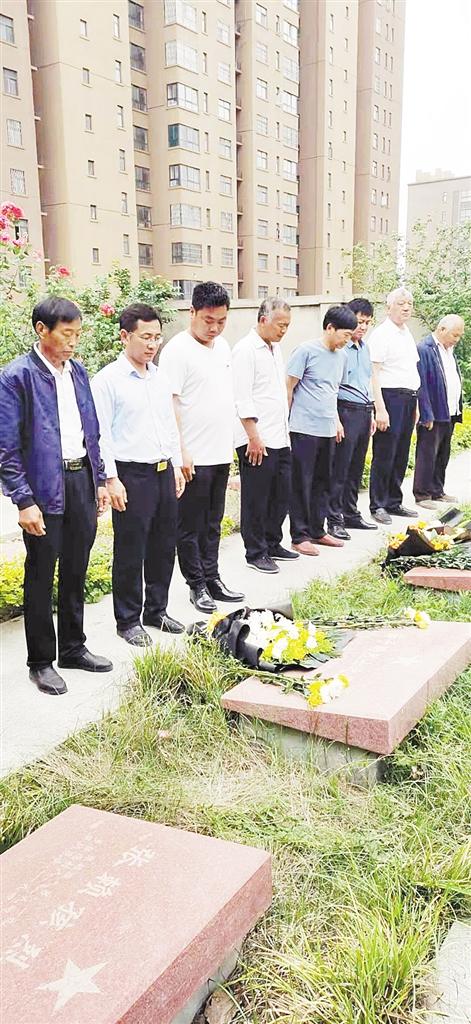 一束束洁白的花朵,寄托着对烈士的哀思,一滴滴滚烫的热泪,表达着对亲人的牵挂。5月12日,西华县退役军人事务局、东王营乡有关人员和薛景洪一起前往开封市尉氏县烈士陵园悼念薛子明烈士。在薛子明烈士墓前,薛景洪老人眼里噙着热泪哽咽着说:“薛老先生,薛庄村亲人看您来了,我们没有忘记您,我们一直在寻找您。”