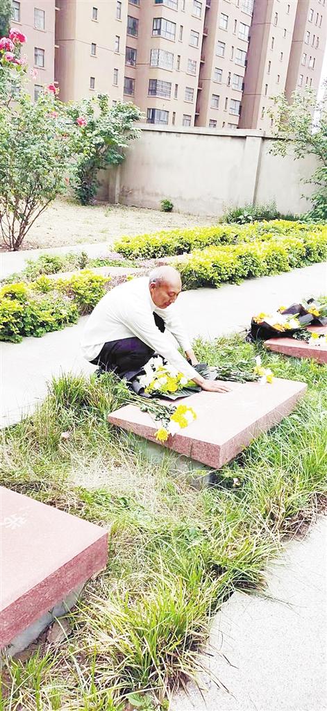 5月12日上午,尉氏县烈士陵园内,一排排墓碑安静地排列在鲜花绿草中,来自西华县东王营乡薛庄行政村74岁的村民薛景洪等在刻着“薛子明烈士”的墓碑前三鞠躬,表达对烈士的悼念。随后,薛景洪蹲下身子轻轻抚摸着墓碑陷入沉思。他说:“虽然现在还没有证据认定薛子明就是我失散多年的叔叔,但我感觉他就是我的亲人,是我们薛庄人的亲人,是薛庄全村人的光荣。”