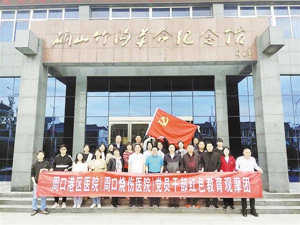 本报讯 (记者 侯国防 通讯员 艾义麟 文/图) 为加强对党员干部的党性教育,激励全体党员干部继承和发扬党的优良传统和作风,全面推进党组织建设,近日,周口港区医院(周口烧伤医院)组织党员干部职工前往驻马店市确山县竹沟革命纪念馆和老乐山景区,进行红色教育拓展活动(如图)。