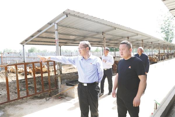 5月28日,县委副书记王智华轻车简从,到清集、常营等乡镇调研指导畜牧业发展和“三夏”生产及秸秆禁烧工作。图为王智华在太康县雨醒养殖专业合作社调研。