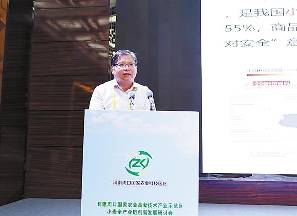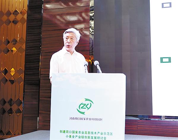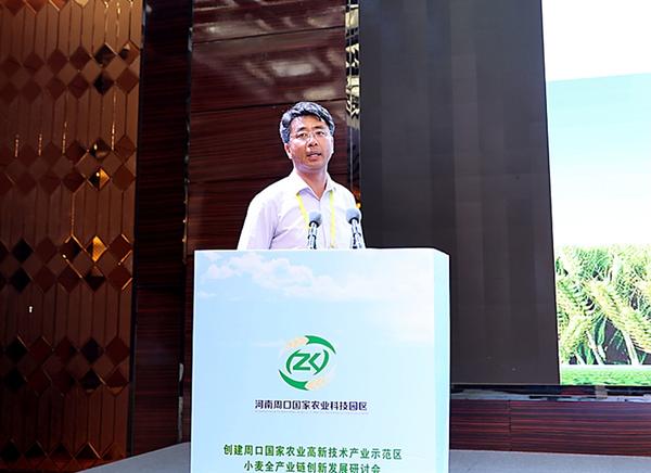 刘继标、介晓磊在研讨会上致辞,罗文阁和特邀专家许为钢、雷振生、黄继红、马新明、殷贵鸿、杨森、韩玉林围绕小麦全产业链创新发展分别作演讲发言。