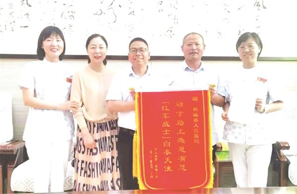 原来,5月22日,郸城县人民医院党员医务人员在县医共体党委和第一医健集团党委组织下赴大别山红色教育基地参加学习培训。这群身穿红军军装的“战士们”,路遇一群师生,其中一名女学生突发急症。该院胃肠外科专家、副院长郑德玺,护理支部的庄坤、刘忠霞等几名“红军战士”马上走上前去施以救治。20分钟后,孩子疼痛缓解、精神振奋。郑德玺耐心嘱托随行的老师们,要多给孩子以心理安慰,必要时采取热敷、按压穴位等措施。之后,双方握手告别。走出好远,那群师生还在向他们挥手道别。