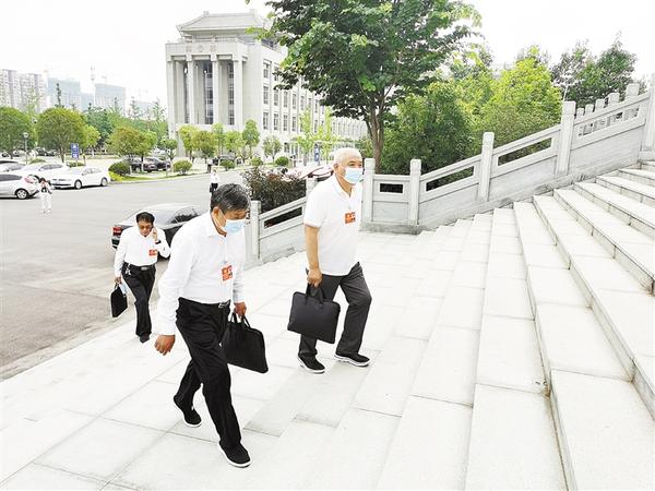 6月9日,市政协第四届五次会议开幕,政协委员步入会场。 记者 孙安平 摄