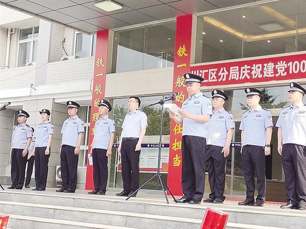 在时文慧的带领下,参会人员面向党旗集体宣誓。李祥生宣布“川汇区公安分局庆祝建党100周年高等级社会面巡逻防控全面启动”,20辆警用摩托车、18辆警车组成的巡逻车队警灯闪闪、浩浩荡荡,沿川汇路、建设大道、七一路等重要路段进行巡逻。