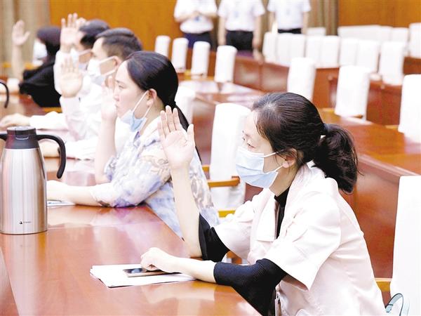 6月11日,市政协委员们举手通过大会各项决议草案。 记者 孙安平 王映 摄