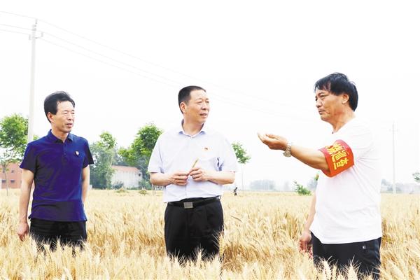 在许湾乡石庄行政村,金黄色的田野里麦浪滚滚,空气中四溢着麦香,已有部分群众抢抓晴好天气开展机械化收割作业,及时晾晒入仓。闫立超嘱咐乡干部、区农业农村部门人员,要做好技术指导和“三夏”生产服务工作,做好应对天气突变的准备,为颗粒归仓保驾护航。