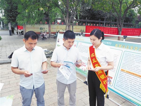 沈丘农商银行员工向过往群众宣传金融知识。 史博文 摄