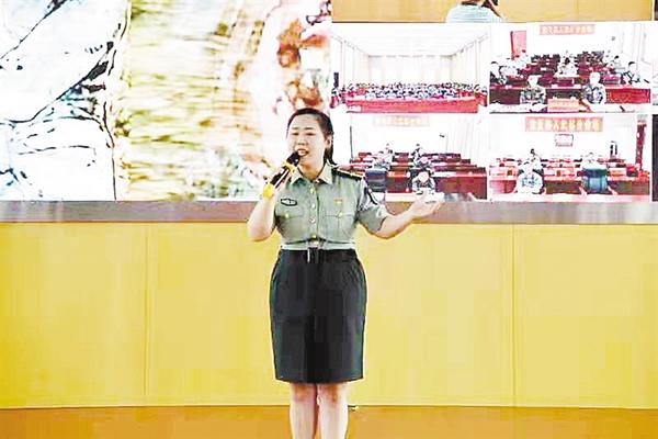 比赛现场,来自各县(市、区、场)人武部的文职人员、专武干部等选手先后以《司令的情书》《老兵永远跟党走》《清澈的爱 只为中国》《初心的力量》《一颗红心跟党走》《让徽章在青春中闪光》等为题,回顾了党的光辉历程、赞颂党的伟大成就、讴歌党的丰功伟绩,抒发人民军队永远忠于党的炽热情怀。