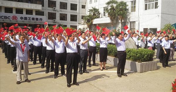 本报讯 ( 记者 王吉城/文 通讯员 李玉/图) 为庆祝党的百年华诞,6月30日上午,工行周口分行隆重集会,在分行机关院内举行升国旗重温入党誓词活动。分行党委班子成员、行长助理、高级经理、本部全体党员、入党积极分子、分行营业部党员代表、离退休党员代表及工银安盛公司全体党员300余人参加活动(如图)。