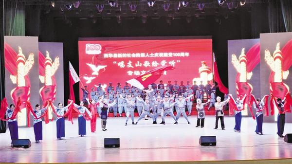 6月24日下午,西华县新的社会阶层人士庆祝建党100周年文艺展演精彩上演,来自全县的新联会会员,以及社会各界代表欢聚一堂,引吭高歌,共同庆祝建党100周年。市委统战部常务副部长詹凯,西华县委常委、统战部长赵增先等到场观看演出。 记者 张猛 张志新 摄