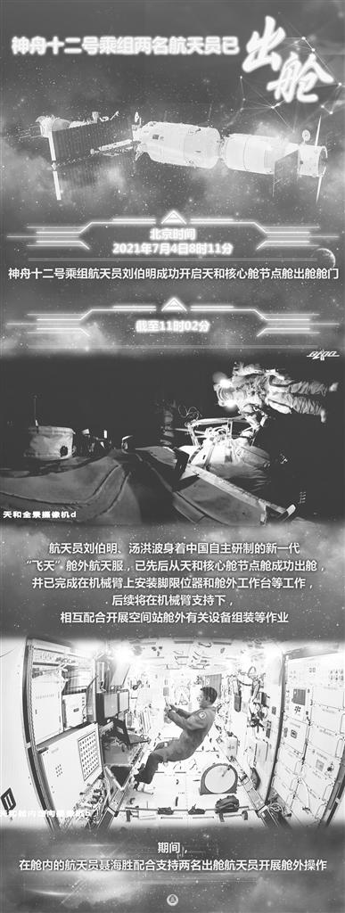 神舟十二号乘组两名航天员已出舱