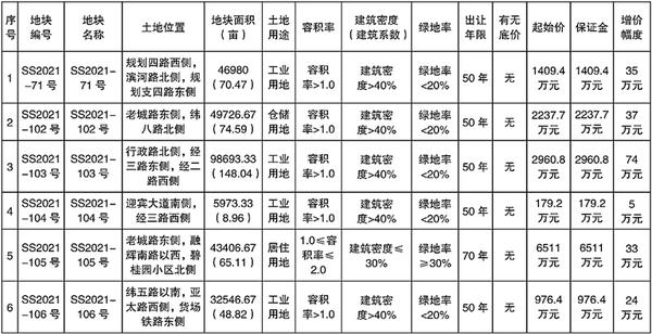 一、拍卖地块的基本情况和规划指标要求(详情见下表)
