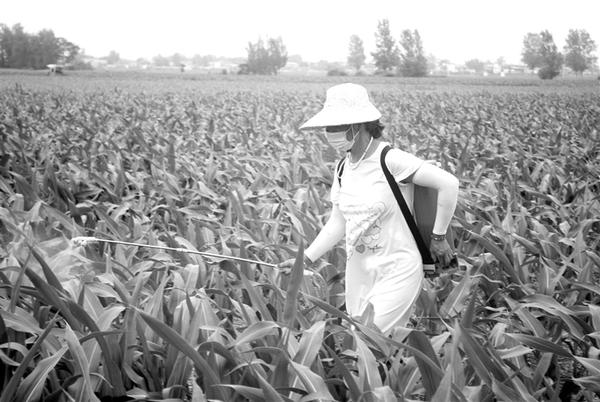 三夏时节,商水县巴村镇农民抢抓农时,加强对秋田作物管理。图为该镇黑朱村农民正对玉米化控除草。 记者 付永奇通讯员 吕俊杰 摄