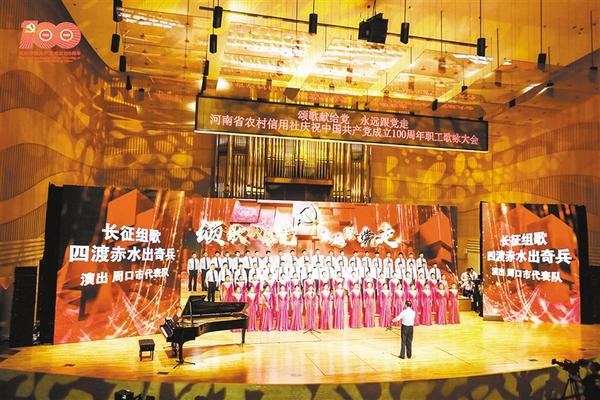 6月25日下午,项城农商银行员工代表全市农商银行系统参加全省农信社职工歌咏大会,用歌声表达对中国共产党深深的祝福和美好祝愿。刘庆平 摄