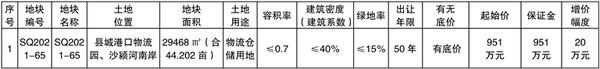 一、拍卖地块的基本情况和规划指标要求 备注:SQ2021-65号:1.宗地“三通一平”(宗地外通路、通电、通水,宗地内土地平整);2.由辖区政府负责按时向受让人交付土地。