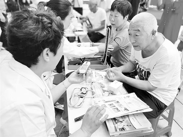 7月12日,川汇区中医院开展以“关注口腔健康,品味老年幸福”为主题的2021年老年健康宣传周活动,为群众提供免费测量血压、血糖等服务,宣传口腔保健、慢性病预防、心理健康、防疫技能等知识,受到群众一致好评。 记者 史书杰 摄