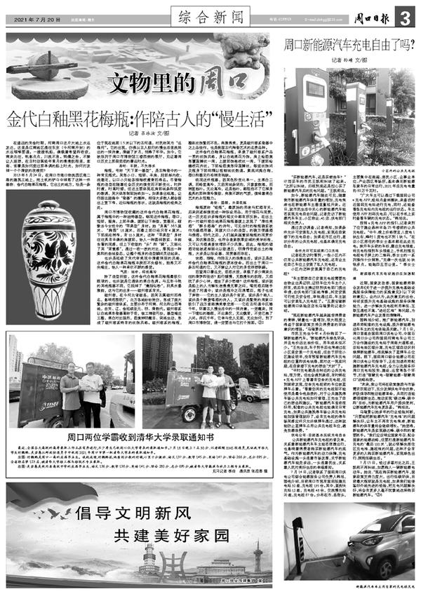 2013年8月24日,在周口市港口物流园区港二路的建筑工地上,挖土机的铲斗中掉落了这样一件器物:金代白釉黑花梅瓶。它出土的地方,恰是一条位于现在地面1.5米以下的古河道,村民称其为“运粮河”。它的出现,仿佛从古人航行的慢生活里流淌出的一抹诗意,清幽了岁月,恬静了年华。如今,它被陈列于周口市博物馆三楼西侧的展厅,见证着周口历史上那段悠悠的漕运时光。