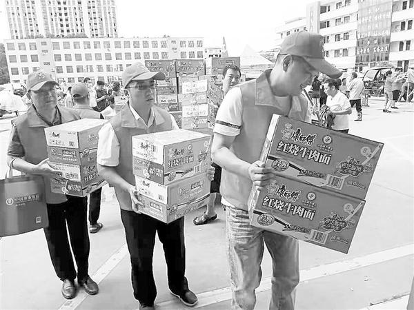 面对严重汛情,昨日,农行周口分行提高政治站位,迅速采购了面包、方便面、火腿肠、矿泉水等食品,紧急运往扶沟、西华两县的群众集中安置点,支援抗洪救灾,彰显责任担当。 记者 徐如景 通讯员 张留厂 冯振涛 摄