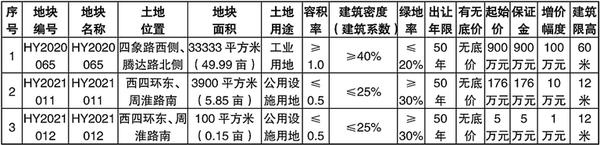 备注:1.具体建设方案须报规划部门批准后实施,土地出让合同签订后,12个月内必须开工建设,工期30个月,土地成交价款需在土地出让合同签订后60日内交清,交地时间6个月内。2.根据淮政(2019)45号文件精神,土地竞得人需在淮阳区注册新公司或设立子公司。3.土地竞买保证金必须以竞买申请人(单位)自身的名义交纳,竞买申请人(单位)与交款人(单位)名称不一致的,无法确认其竞买资格,交纳款项无效。4.具体以规划部门出具的规划指标为准,详见规划设计条件或批复文件。