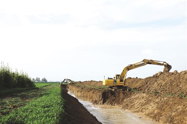本报讯(记者 徐松 文/图)7月22日,汛情紧急,汲冢镇李寨村东侧,20台挖掘机分段作业,夜以继日地开挖一条长约3.6千米的人工渠(如图)。目前,这条人工渠已被群众誉为保县城洺河水域安澜、防4个乡镇数万亩耕地积水的“民心渠”。