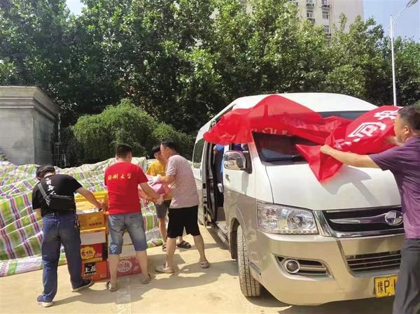 本报讯(记者 徐松 通讯员 张海鹰 文/图)7月25日上午,郸城县中心医院副院长马金来受院长刘辉、党总支书记梁丽的委托,护送满载饮用水和食品的车辆开赴郑州,驰援郑州大学第五附属医院(如图),受到了郑州大学第五附属医院院长郑鹏远、内镜室主任郑权等人热情接待。