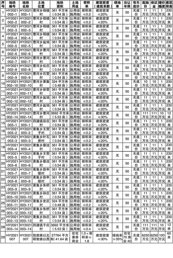 拍卖报价时间为:HY2021002-1地块:2021年8月18日10时。HY2021002-2地块:2021年8月18日10时10分。HY2021002-3地块:2021年8月18日10时20分。HY2021002-4地块:2021年8月18日10时30分。HY2021002-5地块:2021年8月18日10时40分。HY2021002-6地块:2021年8月18日10时50分。HY2021002-7地块:2021年8月18日11时。HY2021002-8地块:2021年8月18日11时10分。HY2021002-9地块:2021年8月18日11时20分。HY2021002-10地块:2021年8月18日11时30分。HY2021002-11地块:2021年8月18日11时40分。HY2021002-12地块:2021年8月18日11时50分。HY2021002-13地块:2021年8月18日12时。HY2021002-14地块:2021年8月18日12时10分。HY2021003-1地块:2021年8月18日12时20分。HY2021003-2地块:2021年8月18日12时30分。HY2021003-3地块:2021年8月18日12时40分。HY2021003-4地块:2021年8月18日12时50分。HY2021003-5地块:2021年8月18日13时。HY2021003-6地块:2021年8月18日13时10分。HY2021003-7地块:2021年8月18日13时20分。HY2021003-8地块:2021年8月18日13时30分。HY2021003-9地块:2021年8月18日13时40分。HY2021003-10地块:2021年8月18日13时50分。HY2021003-11地块:2021年8月18日14时。HY2021003-12地块:2021年8月18日14时10分。HY2021003-13地块:2021年8月18日14时20分。HY2021003-14地块:2021年8月18日14时30分。HY2021007地块:2021年8月18日14时40分。