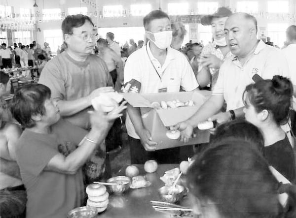 烤馕从车上卸下,直接发到了人们手里,现场立刻热闹了起来(如图)。“我长这么大,还是第一次吃到正宗的新疆烤馕嘞!”“谢谢维吾尔族的朋友们冒着酷暑、不分昼夜地赶到我们这里。”“五十六个民族一家亲,欢迎你们到崔桥做客!”
