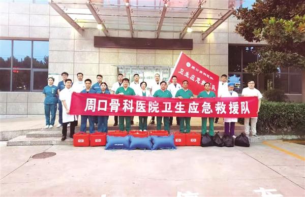7月22日晚上,周口骨科医院卫生应急救援队紧急出发,第一时间抵达西华县西华营镇第一初级中学安置点,开展群众健康守护工作。 记者 张猛 张志新 通讯员 邱旭东 摄