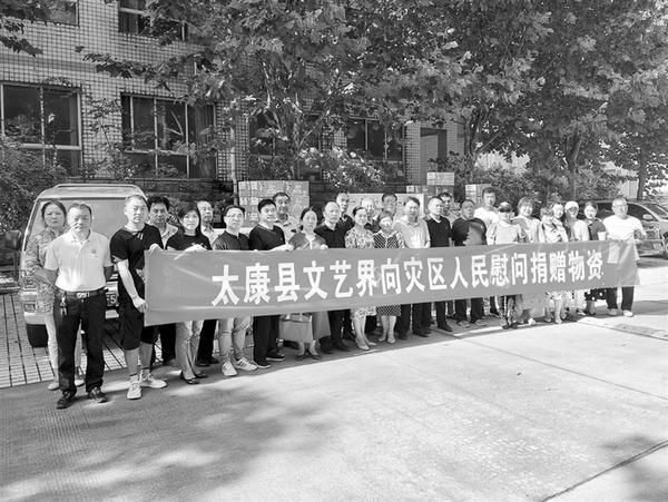 连日来,面对我市严峻的防汛形势,全市各级党员干部和人民群众全力投入防汛救灾工作,周口文艺界也积极行动,通过各种形式向灾区捐款捐物、奉献爱心。图为太康县文联向常营捐赠救灾物资。