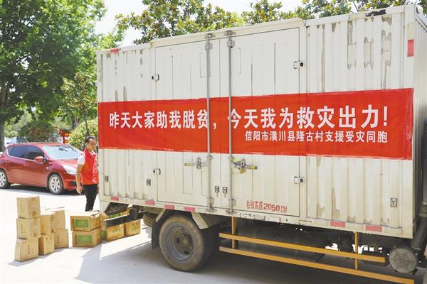 当天中午,挂着印有“昨天大家助我脱贫,今天我为救灾出力!”字样条幅的防汛救灾物资运输车抵达周口港区。“要不是前两天防御台风‘烟花’,我们早就来了。”隆古村党支部书记段长春一下车就连忙慰问众人。一同前往的还有6位年轻力壮的志愿者,他们不辞劳苦,和港区消防、城管人员一起顶着烈日,用了半个多小时将满车物资搬运到位(如图)。