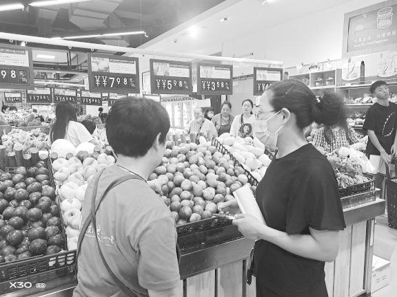 一如往常,7月29日早晨,朱老伯作为第一波顾客进入万果园2店买菜。超市里,鲜绿的小白菜,红彤彤的西红柿,水灵灵、圆鼓鼓的茄子等数十种新鲜蔬菜琳琅满目,水果、肉类、水产等农副产品也货多量足。