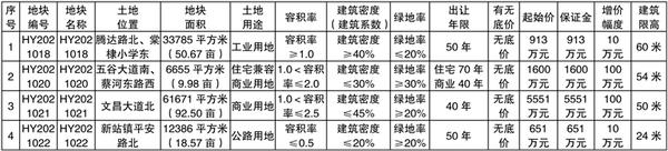 备注:1.具体建设方案须报规划部门批准后实施,土地出让合同签订后,12个月内必须开工建设,工期30个月,土地成交价款需在土地出让合同签订后60日内交清,交地时间6个月内。2.根据淮政(2019)45号文件精神,土地竞得人需在淮阳区注册新公司或设立子公司。3.土地竞买保证金必须以竞买申请人(单位)自身的名义交纳,竞买申请人(单位)与交款人(单位)名称不一致的,无法确认其竞买资格,交纳款项无效。4.HY2021018宗地具体产业类型为纺织服装、服饰业,投资强度≥3750/公顷;HY2021020号宗地兼容商业设施的建筑面积不超过地上总建筑面积的15%,并集中配置。5.具体以规划部门出具的规划指标为准,详见规划设计条件或批复文件。