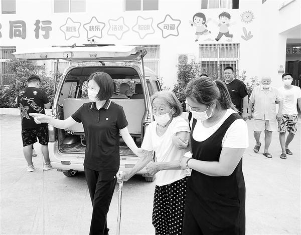 面对目前严峻疫情形势,郸城县石槽镇高度重视,把抓好疫苗接种工作作为当前的头等大事,上下同欲、主动作为,科学研判、精准出击,快速推进疫苗接种工作,筑牢全镇疫情防控铜墙铁壁。图为该镇对年龄较大、行动不便的群众,采取车接车送的方式确保及时接种疫苗。