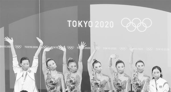 艺术体操——团体全能:中国队获第四名 8月8日,中国队选手在比赛后致意。 当日,在东京奥运会艺术体操团体全能决赛中,中国队获得第四名。 新华社记者 杨磊 摄
