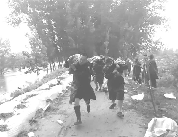 邮储银行周口市分行闻“汛”而动,响应政府号召,第一时间成立党员突击队、青年突击队,在做好自救、确保员工及客户人身和财产安全的同时,积极履行社会责任,奋战在抗洪一线,努力保障灾中灾后优质金融服务畅通。图为邮储银行工作人员奋战在抗洪抢险第一线。