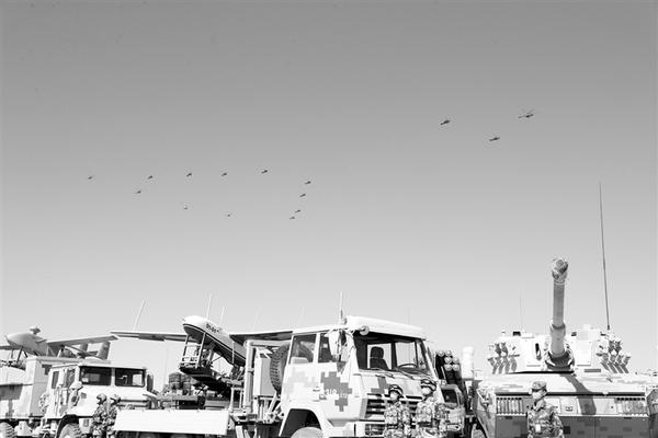巍巍贺兰,铁甲列阵。茫茫戈壁,塞上点兵。中俄两国国旗高高飘扬,中俄两军地面方队威严伫立。演习开始仪式上,两军参演官兵按作战编成编组13个地面方队、2个空中梯队,接受沙场检阅。随后,联合指挥部指挥员、西部战区副司令员刘小午,联合指挥部副指挥员、俄军东部军区副司令诺苏列夫分别致辞。