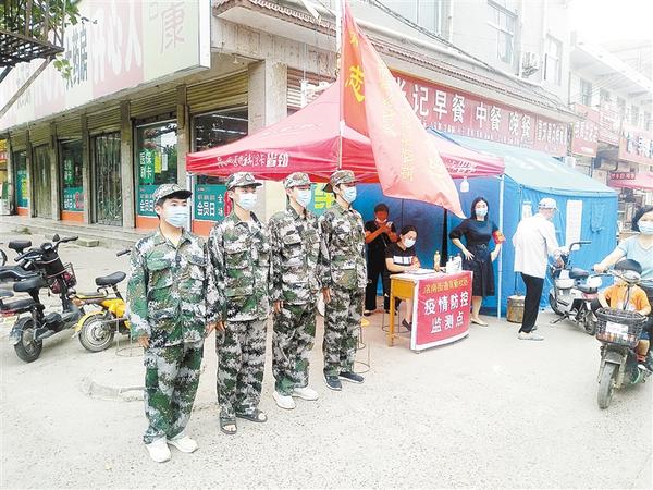 郸城应征青年上防疫防控一线,参与卡点执勤、防控宣传、人员排查、接种现场秩序维护等工作。记者 徐松 通讯员 丁三军 摄