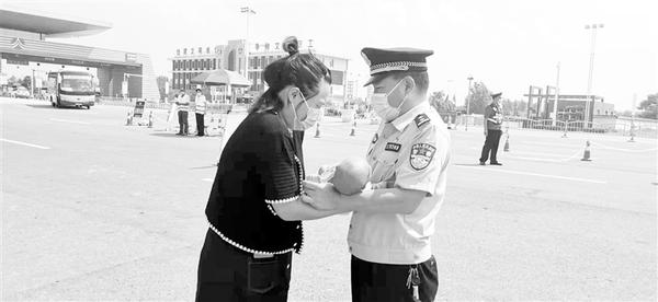 近日,周口市公安局川汇区分局组织民警在商南高速公路周口北站卡点执勤,服务保障疫情防控工作安全有序进行。这时,一辆外地客车停下,工作人员开始对乘客进行体温检测。车上一名带婴儿的女乘客为避免接触更多人,想把婴儿交给执勤的民警代看。正在执勤的该分局党委成员、纪检书记周文贤了解情况后,毫不犹豫地接过婴儿,让女乘客尽快排队做了检测。